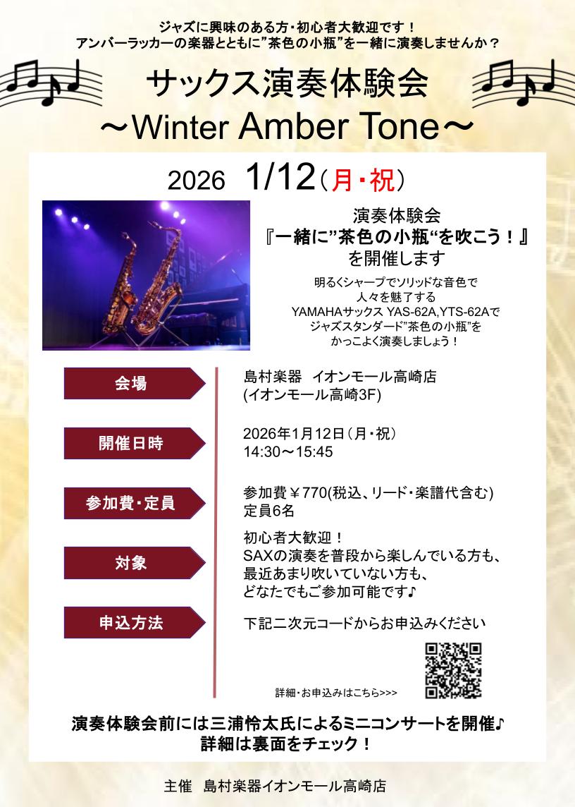 ![サックスのイベントを開催いたします!ご興味のある方はぜひご参加ください! CONTENTSプロフィール三浦玲太氏によるミニコンサート一緒に“茶色の小瓶”を吹こう♪62シリーズ アンバーラッカーサックス相談会開催中♪お問い合わせプロフィール 三浦玲太氏によるミニコンサート 三浦玲太氏によるミニコンサー […]](https://www.shimamura.co.jp/shop/takasaki/wp-content/uploads/sites/109/2025/12/20251218-503d5762-bf02-424f-9a7b-c53df1aa2544.jpg)