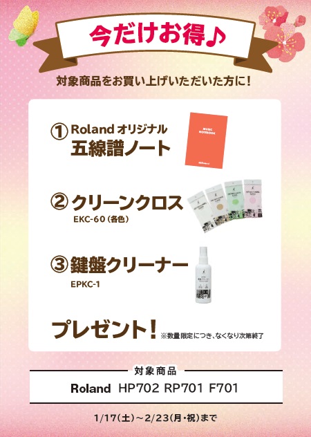| KF-25 | ヘッドホン『ATH-EP700S2』、 Rolandオリジナル五線譜ノート、 クリーンクロス、 鍵盤クリーナー | ¥495,000 |