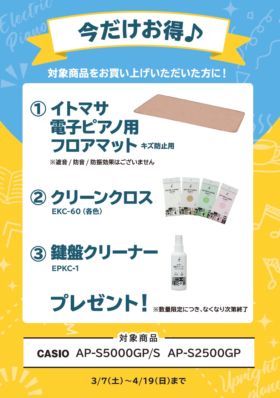 | AP-S2500GP | イトマサ 電子ピアノ用マット、 クリーンクロス、 鍵盤クリーナー | ¥110,000 |