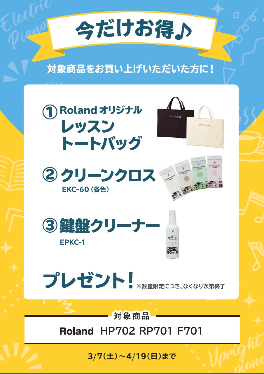 | RP701 | Rolandオリジナルレッスントートバック、 クリーンクロス、 鍵盤クリーナー | ¥132,000 |