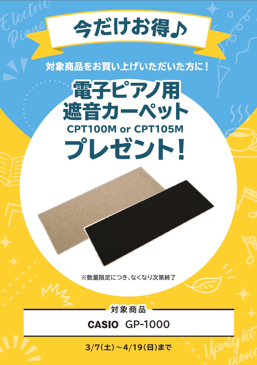 | GP-1000 | 電子ピアノ用遮音カーペット『CPT100M』or『CPT105M』、 ※えらべるpay¥20,000分プレゼント! | ¥495,000 |