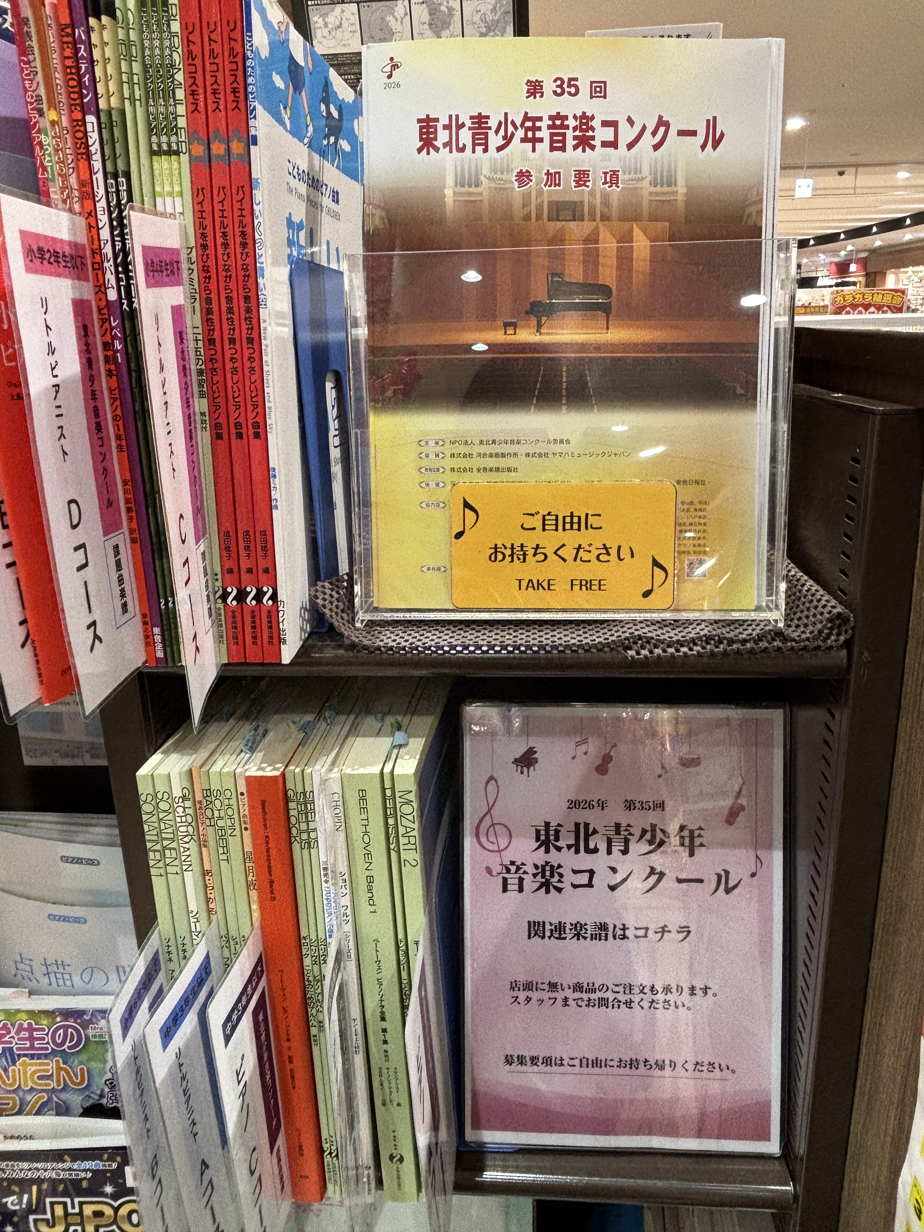 店頭にて「第35回 東北青少年音楽コンクール」の要項を設置しております。