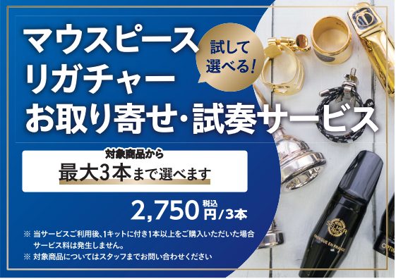 当店にない楽器、マウスピースやリガチャーなどもお取り寄せ・ご試奏頂くことが可能です。ご希望の方はお電話もしくは店頭にてお問い合わせください。