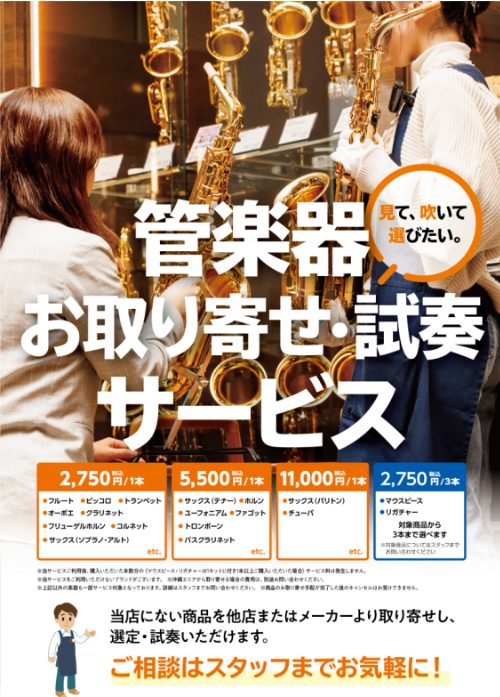 楽器・マウスピースのお取り寄せ試奏も可能です!