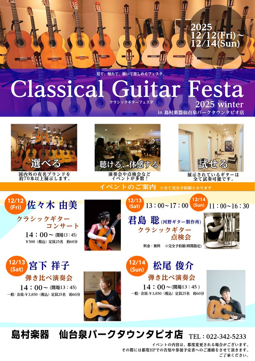 12/12(金)~12/14(日)仙台泉パークタウンタピオ店にてクラシックギターフェスタが開催されます