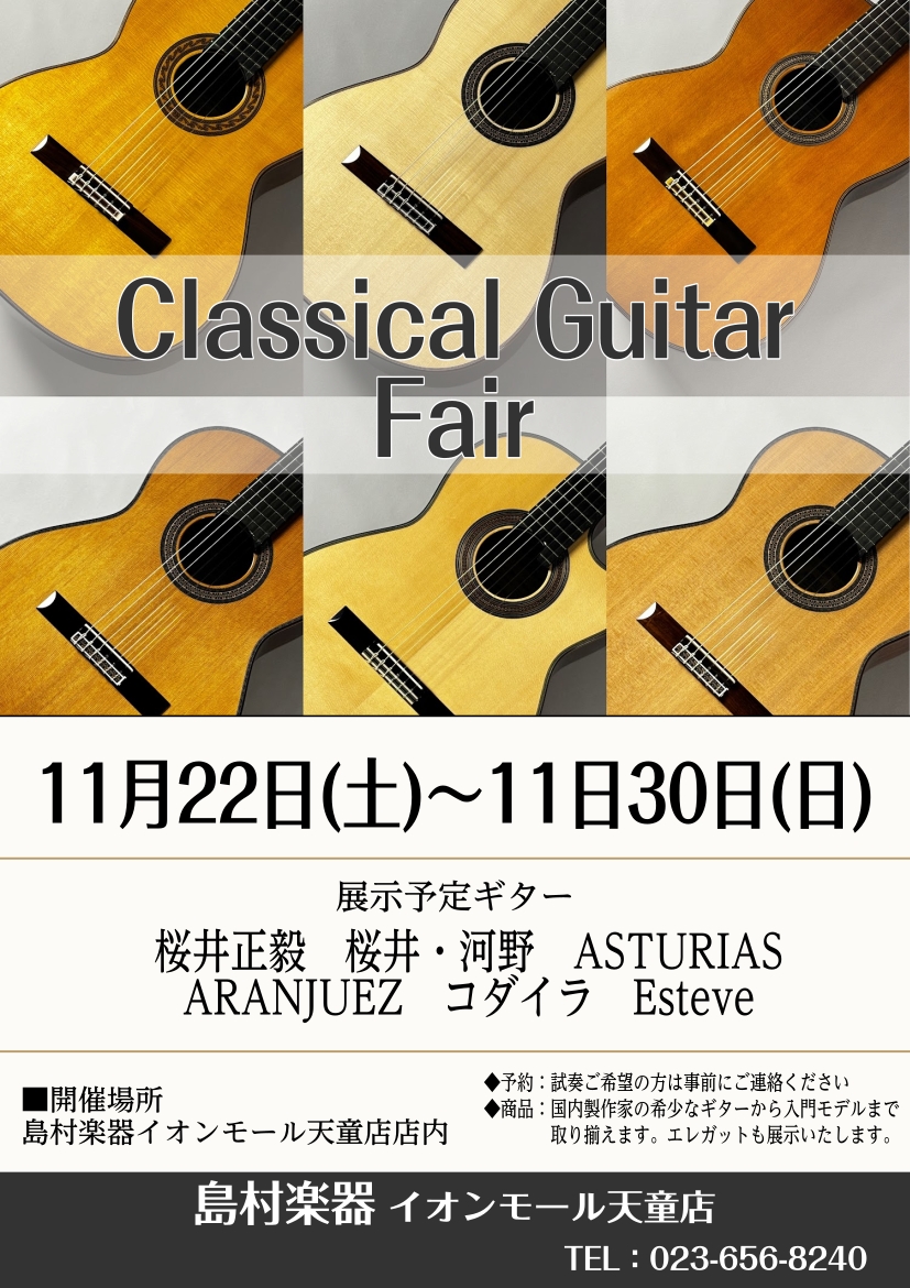 11月22日(土)~30日(日)の期間中、イオンモール天童店店内特設会場におきまして、Classical Guitar Fairを開催いたします。