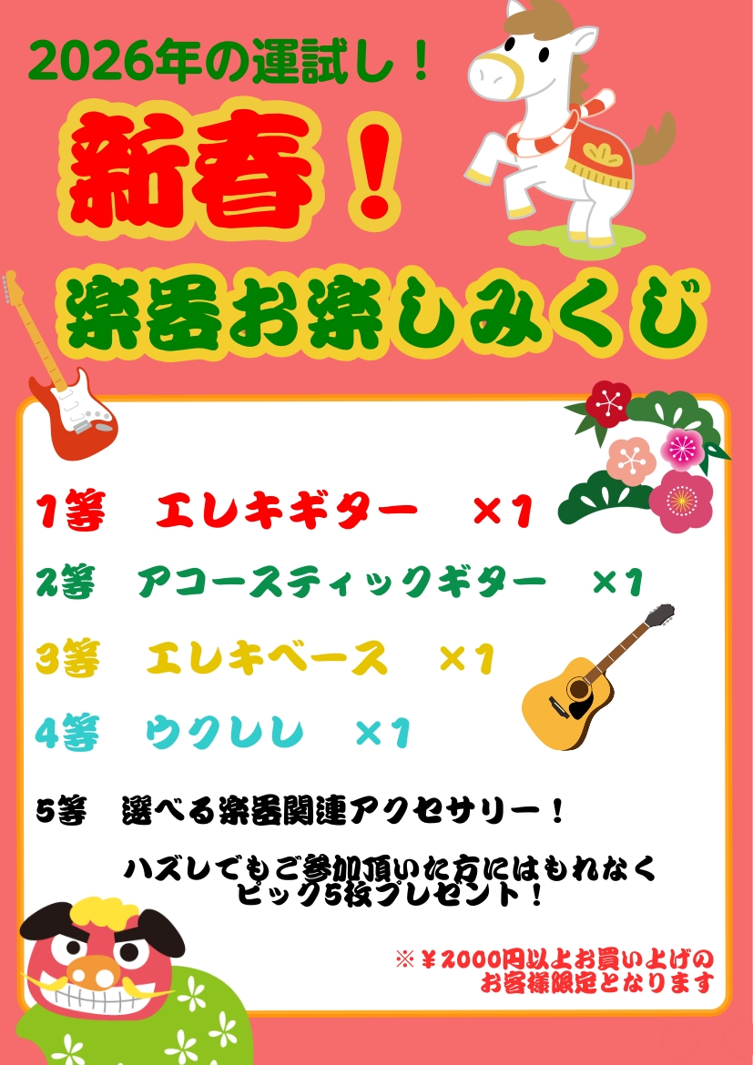 ※ギター・ベース・ウクレレ・楽器お楽しみくじは2026/1/1からのキャンペーンとなっております。