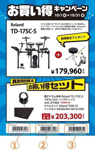 Roland TD-17SC-S ¥179,960(生産完了のため大幅値下げ) 配送無料