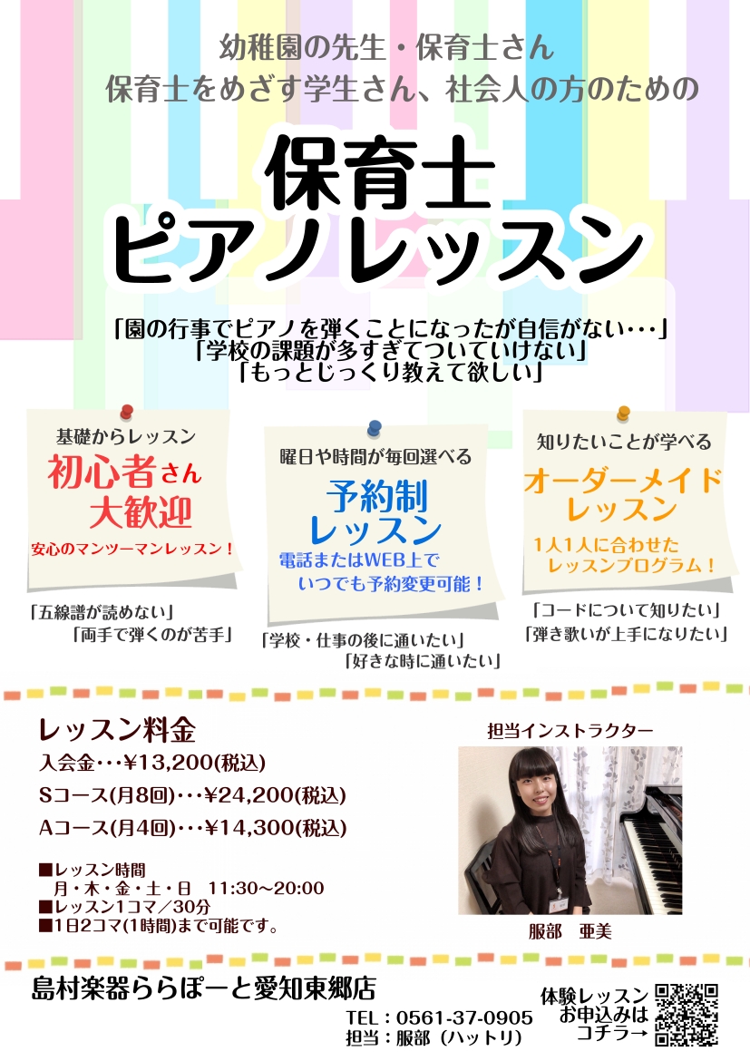 ららぽーと愛知東郷店ピアノインストラクターの服部です。