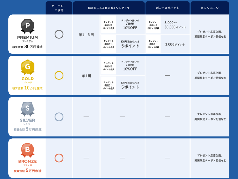 メダルは、2024年4月~2025年3月までの利用金額に応じて判定された2025年度メダルを指します。なお、2025年4月以降に新規入会された会員様はブロンズメダル判定となります。