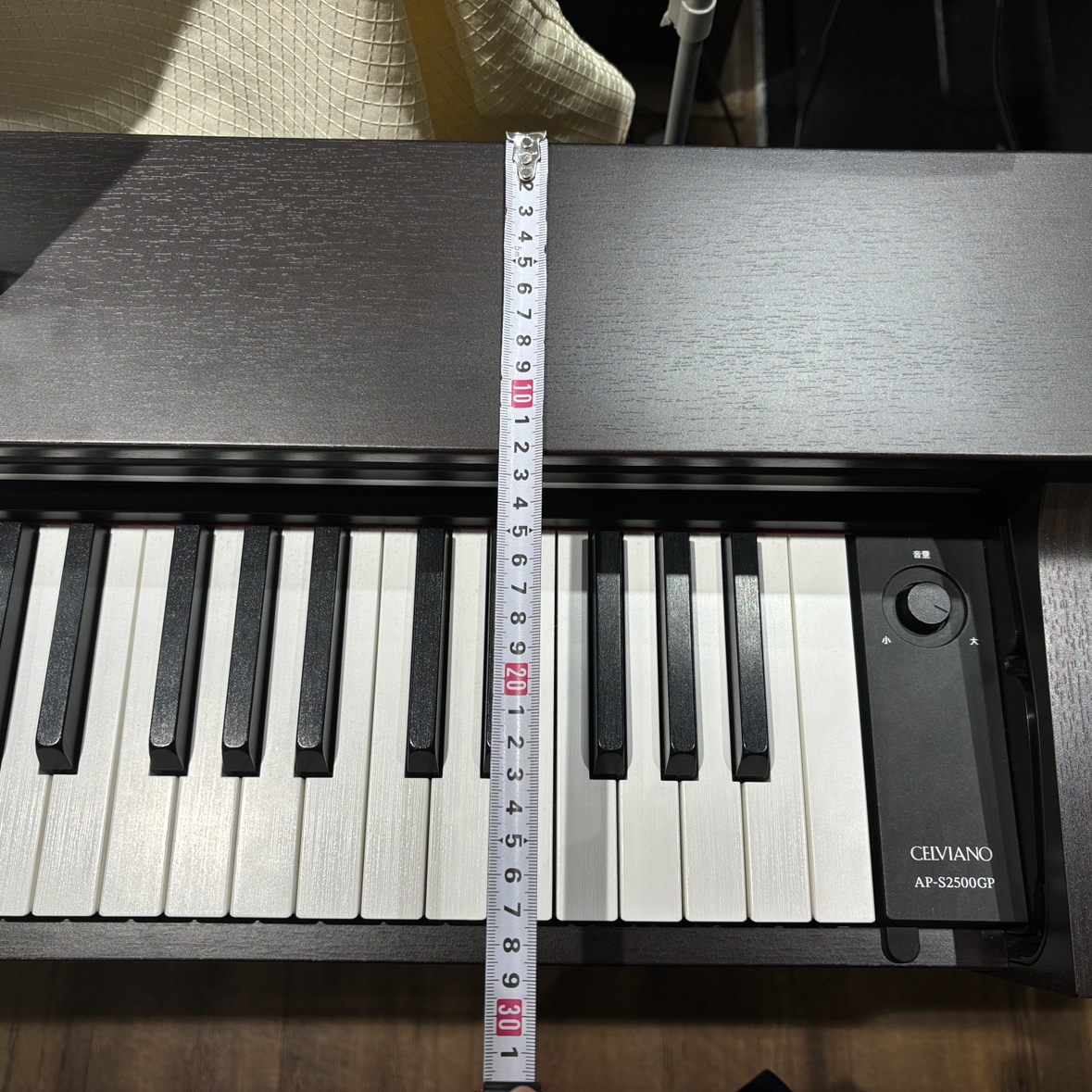 一般的な電子ピアノの奥行きは40㎝~50㎝ですので、とてつもなくスリムです。