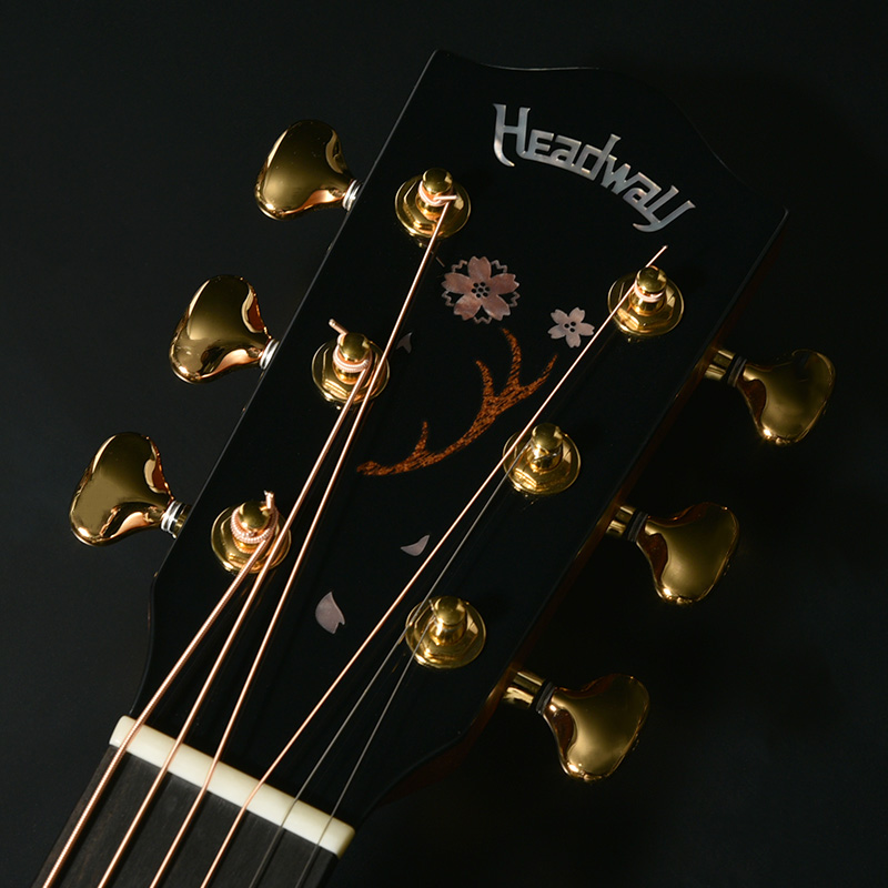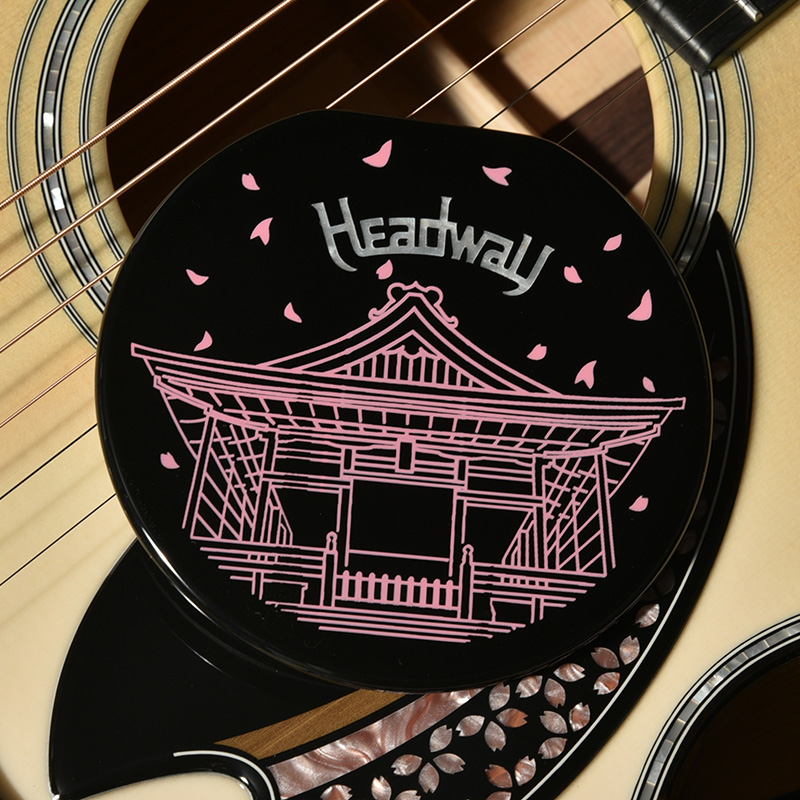 奈良県黒滝村の桜をサイドバック材に用いた、2025年 One Day Guitar Show 限定の桜モデル。黒滝村に隣接する吉野山の千本桜をイメージし、咲き誇る桜を随所に散りばめました。