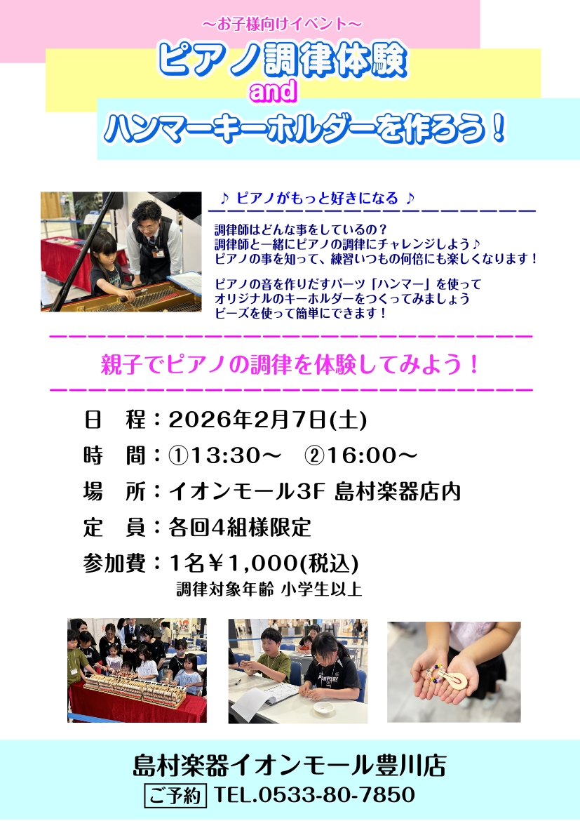 【参加者募集中!】2026/02/07(土) 調律体験会&ハンマーキーホルダーを作ろう!