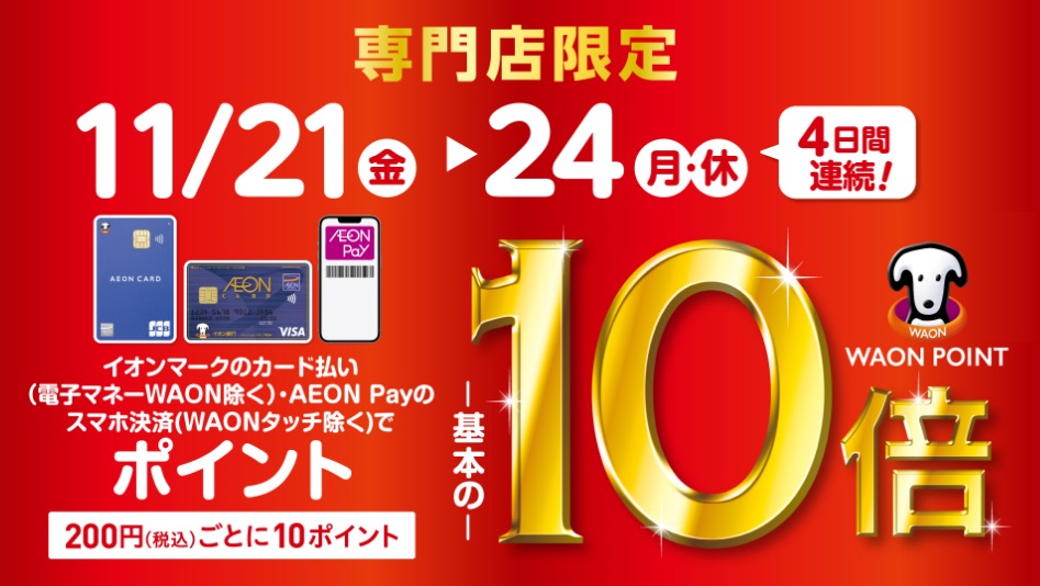 11月21日(金)~24日(月祝)の4日間イオンカード払いがお得です!