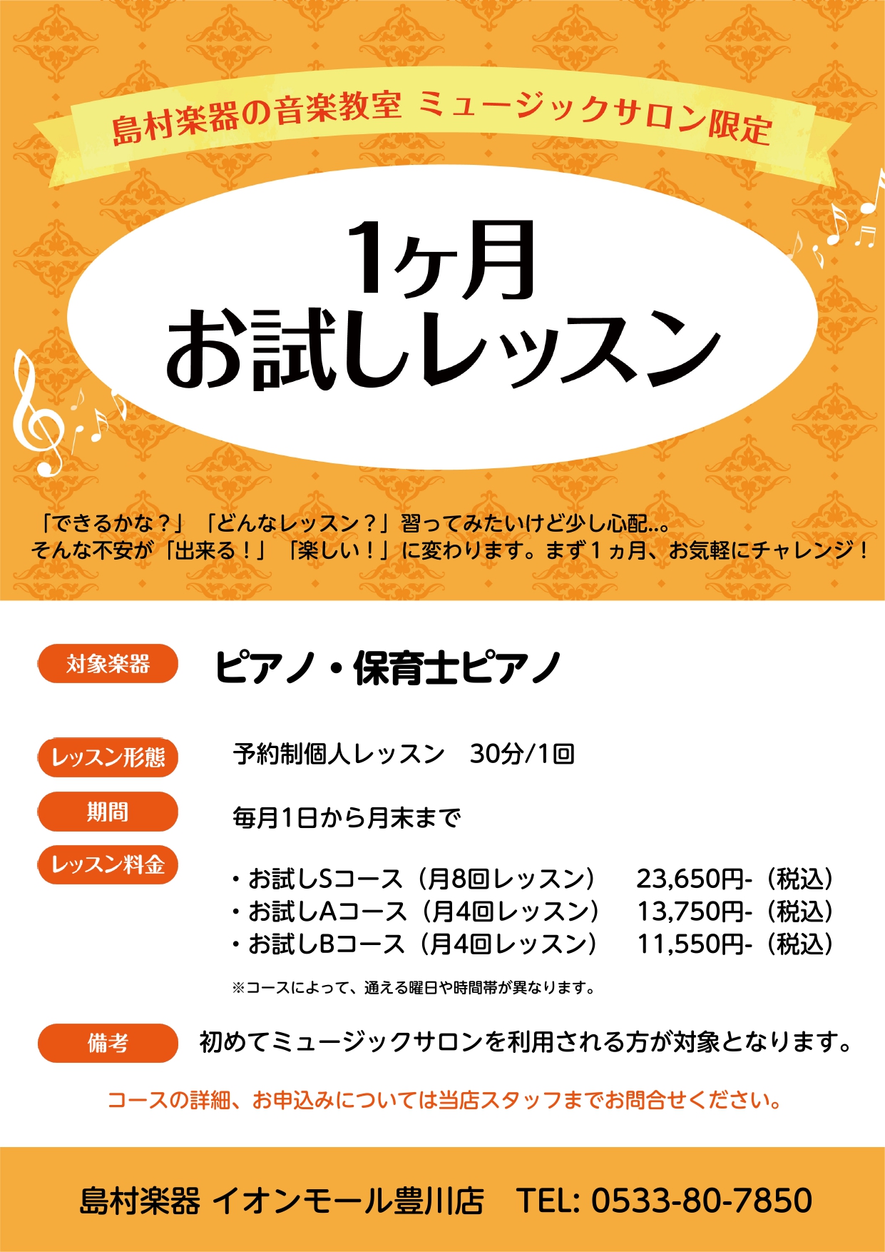 お問い合わせ: 島村楽器イオンモール豊川店 TEL: 0533-80-7850