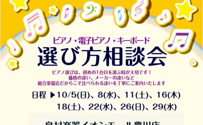 島村楽器豊川店でお気に入りの1台を選びませんか? 当店では豊川市、豊橋市、蒲郡市、田原市、新城市の東三河地区を中心に岡崎市や湖西市からもピアノのご相談をお寄せいただいております。「何を相談したらよいか分からない」というピアノ初心者さんもご安心ください!豊川店ピアノアドバイザーが丁寧にご案内いたします … 続きを読む 🎹10月 ピアノ選び方相談会のご案内🎹