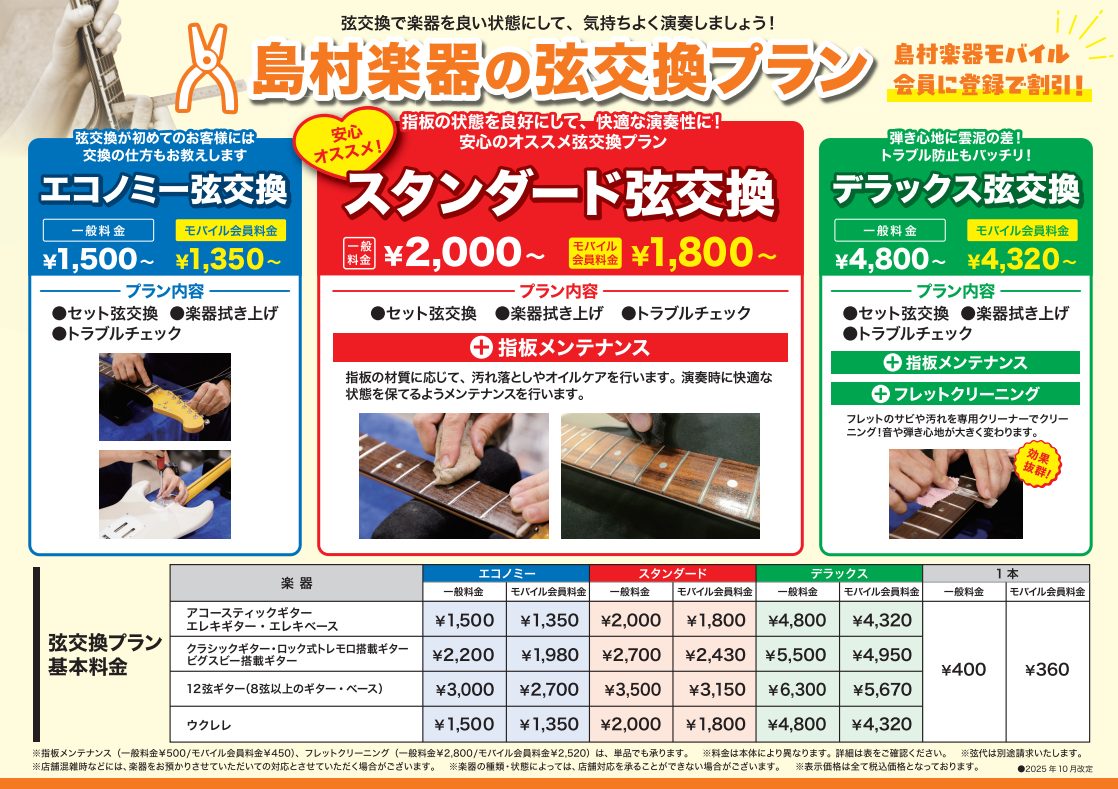 楽器 | エコノミー弦交換 | スタンダード弦交換 | デラックス弦交換 |