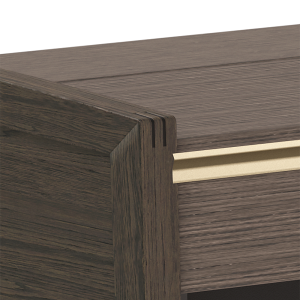 近年登場したカリモク家具で好評の新塗装色「スモークドオーク色」を採用。オーク材(ナラの木)の木目の表情を際立たせ、落ち着いた上質な空間を生み出します。木の素材由来の個性が色の濃淡となって現れる味わい深い表情が特徴で、近年注目されているジャパンディスタイルのお部屋にもマッチします。都内で注目を集めるラグジュアリーホテルの最上階にも、カリモク家具の「スモークドオーク色」のアイテムが採用されており、トレンド感のあるカラーとして高い支持を得ています。