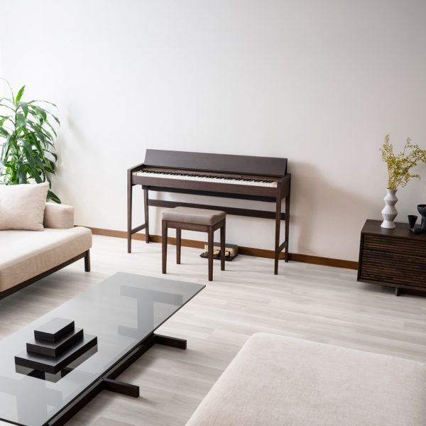 カリモク家具の職人の技が光るインテリアに調和するデジタルピアノ