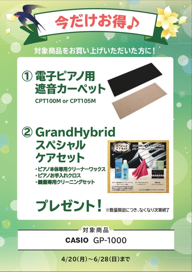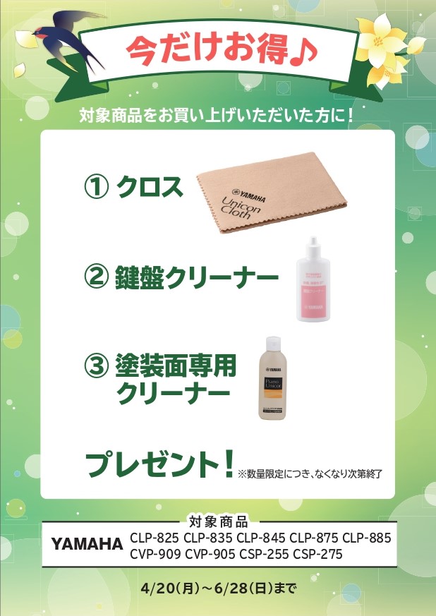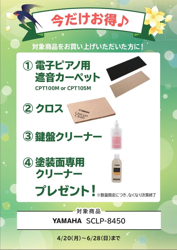 4/20(月)~6/28(日)の期間限定!対象電子ピアノをご購入いただいくと