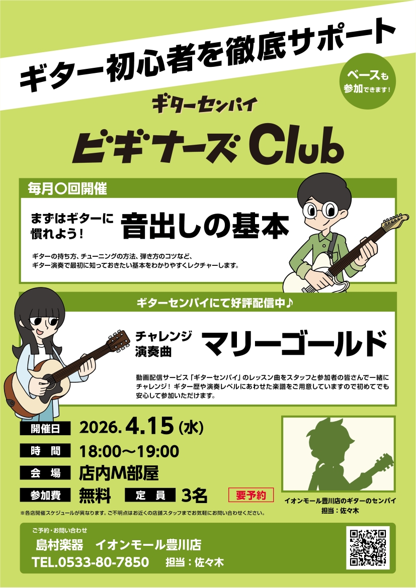 ギターセンパイビギナーズClub、4月日程のお知らせです!!