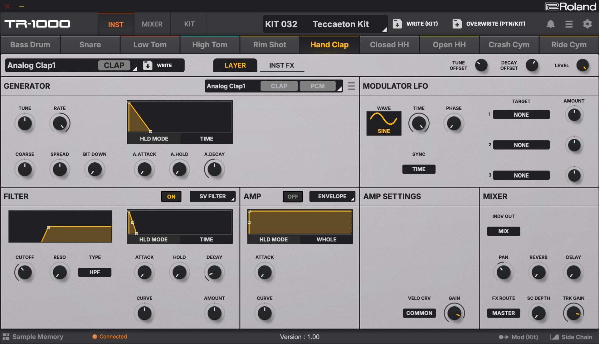TR-1000は、伝説的なTR-808/909の回路を受け継ぎながら、ACBモデリング、FM・VA・PCMエンジン、