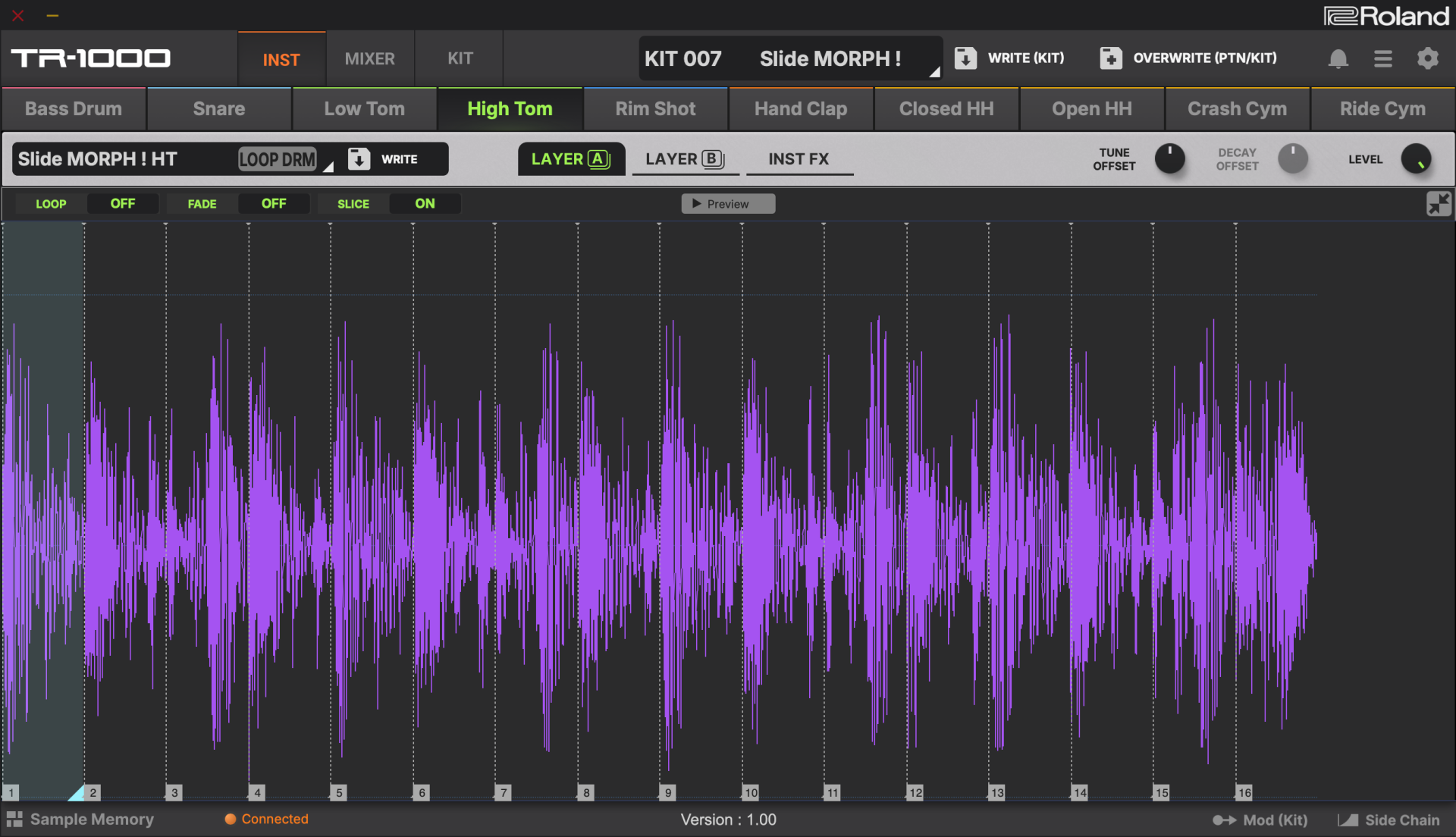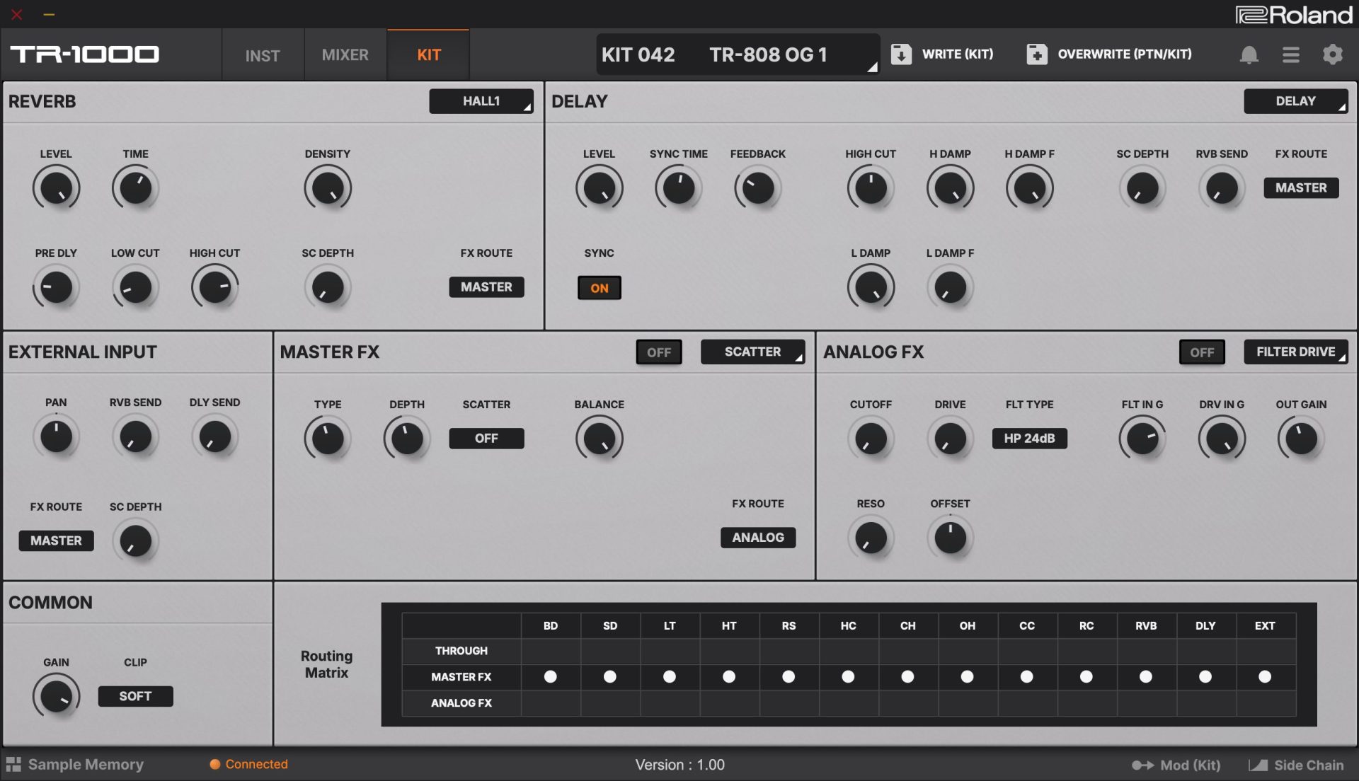 TR-1000は2,000以上のサンプルと46GBのユーザーエリアを内蔵。ステレオサンプリング、リサンプリング、非破壊スライス編集、タイムストレッチといったプロ仕様の機能を持ち、外部サンプルのインポートもスムーズです。さらにアナログフィルターやドライブを含む多彩なエフェクトを搭載し、トラックごとの処理からライブ向けの大規模な加工まで、表現の幅を大きく広げます。