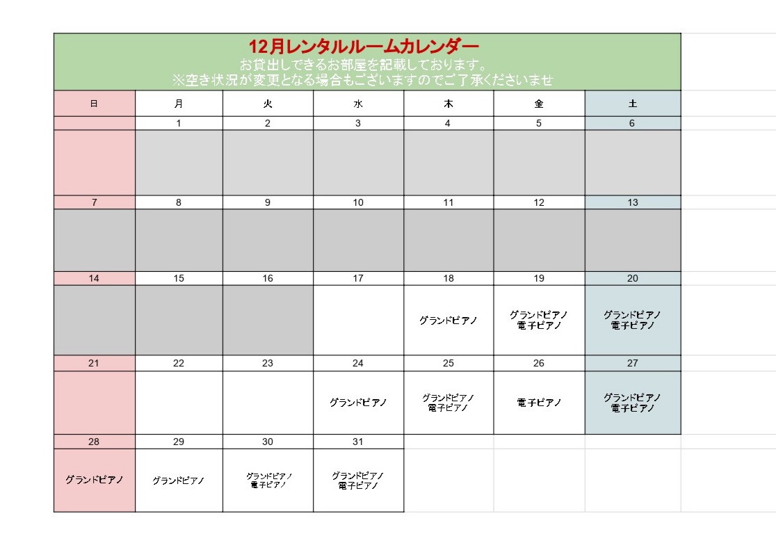 【2025年12月日程更新】レンタルルームのご案内