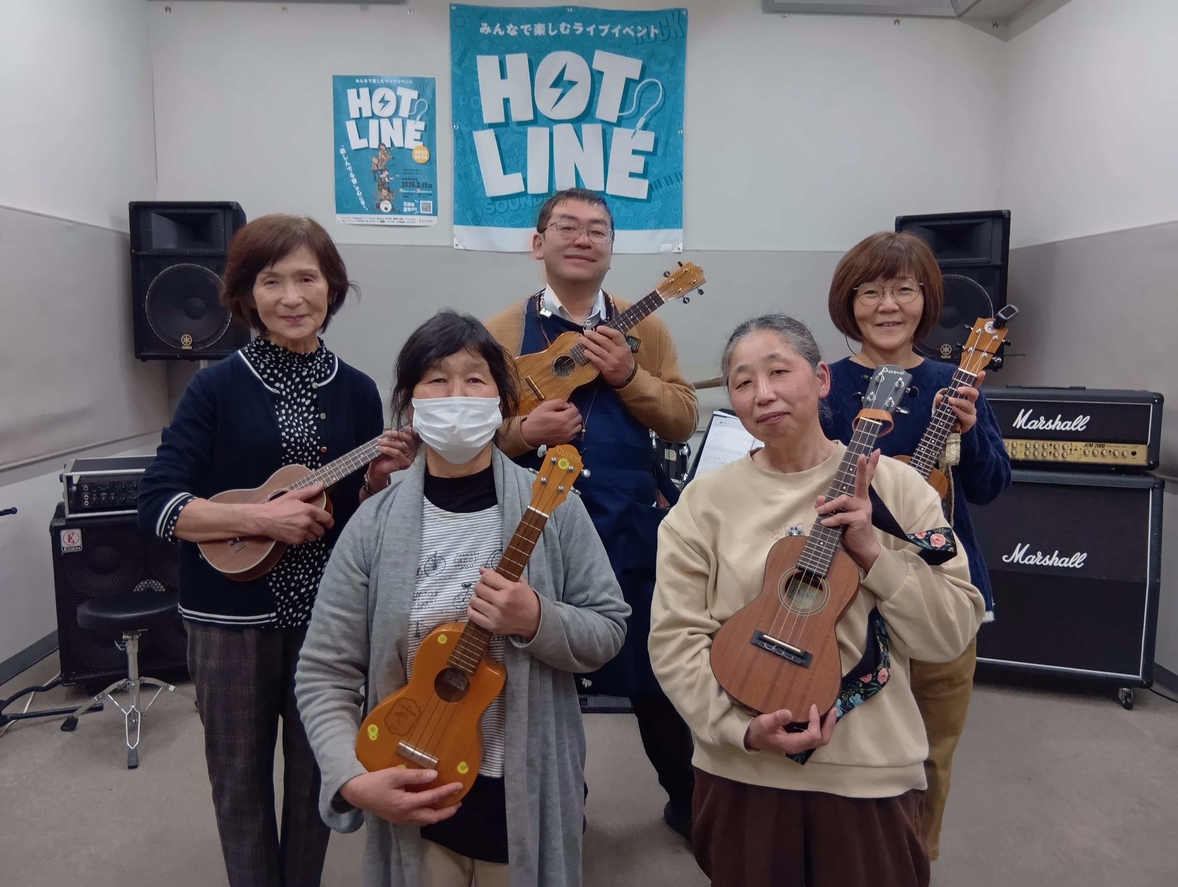 今回のウクレレサークルは当日欠席が相次ぎ、ご参加は4名となりました。お忙しいところご参加いただいた皆様、ありがとうございます。