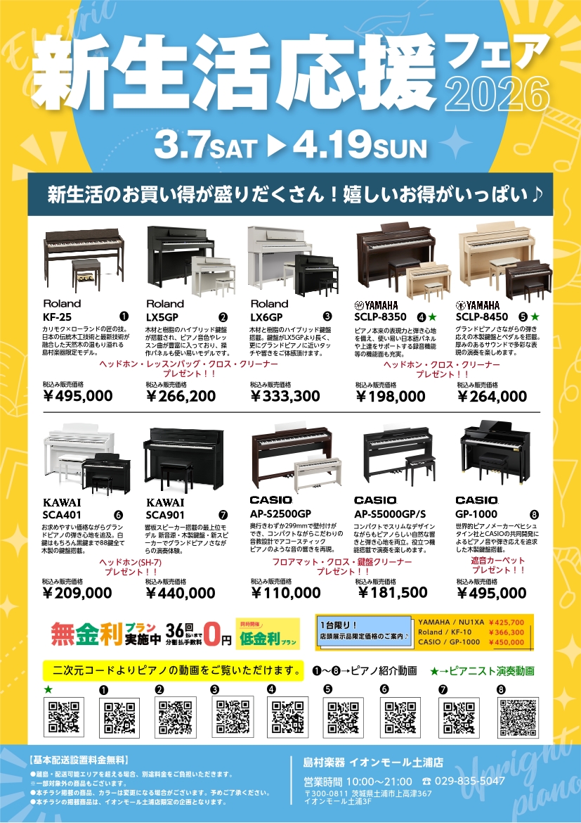 【新生活応援フェア】島村楽器イオンモール土浦店スタッフによるスペシャルコンサート in Spring を開催します♪