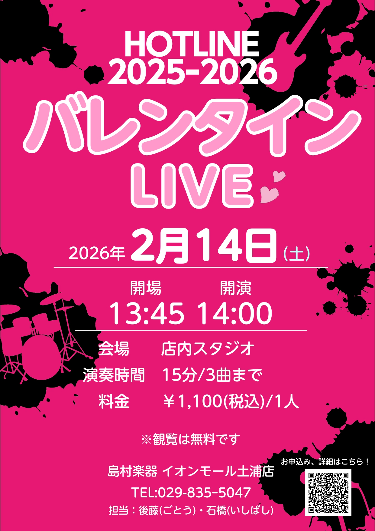 ![島村楽器イオンモール土浦店の後藤です! こちらは2月のHOTLINEの特別企画、バレンタインLIVEの出演者募集ページです♡ 先日の募集開始から多数の出演のお申し込みありがとうございます! ご出演のお申し込み人数が定員に達しましたので募集を締め切りとさせていただきます。 後日出演者のお知らせをいたし […]](https://www.shimamura.co.jp/shop/tsuchiura/wp-content/uploads/sites/133/2026/01/20260105-shima260105-0015_page-0001.jpg)