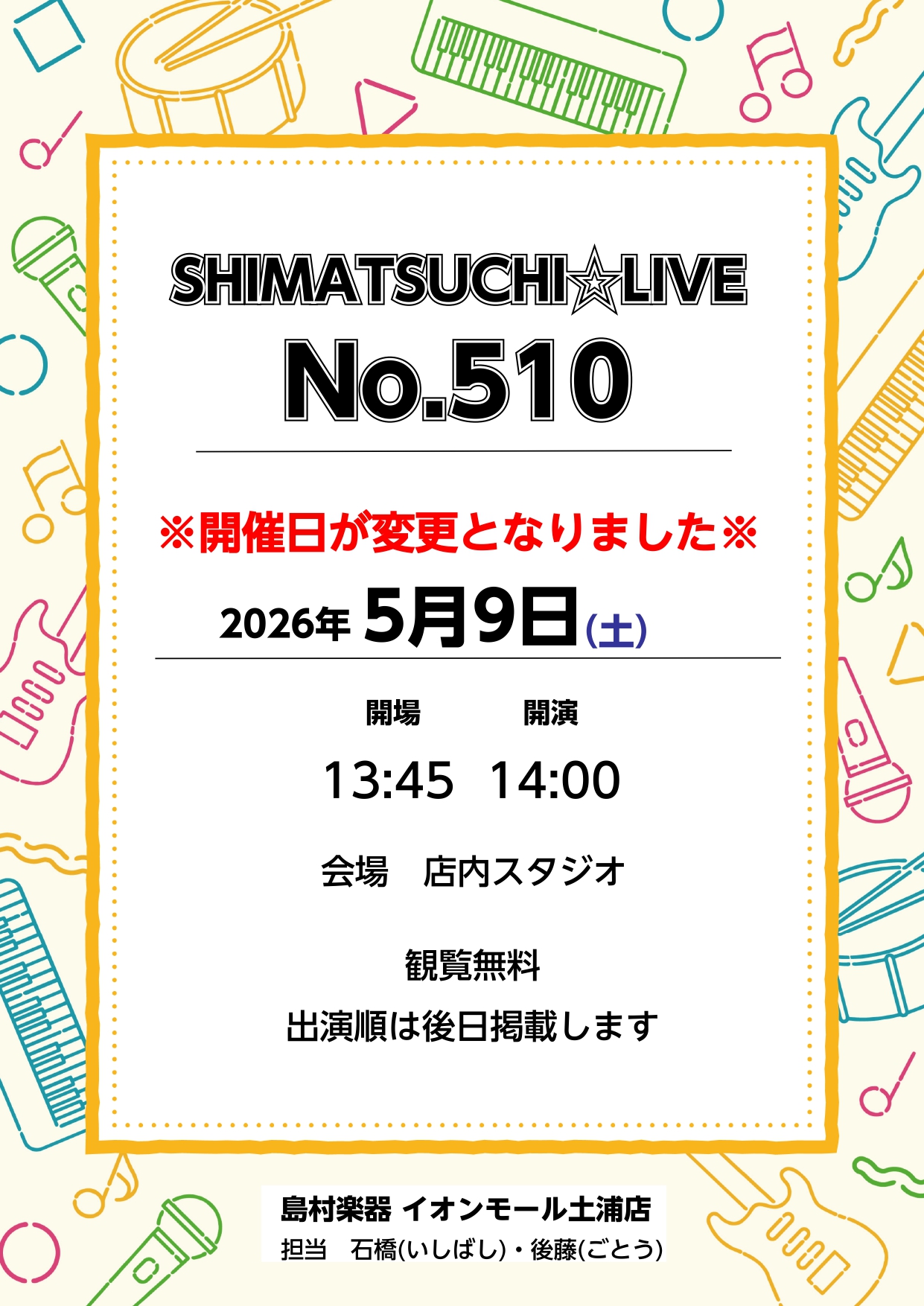 【SHIMATSUCHI☆LIVE~No.510~】出演者満員御礼!<島村楽器でインストアライブしよう!>※4/6更新!