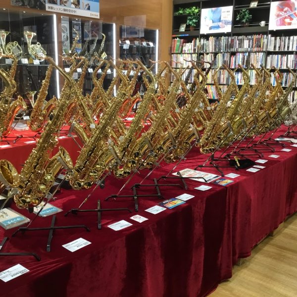 各楽器の定番モデルから普段店頭に並ばない珍しいモデル、中古品まで総勢100本以上の管楽器が集います。