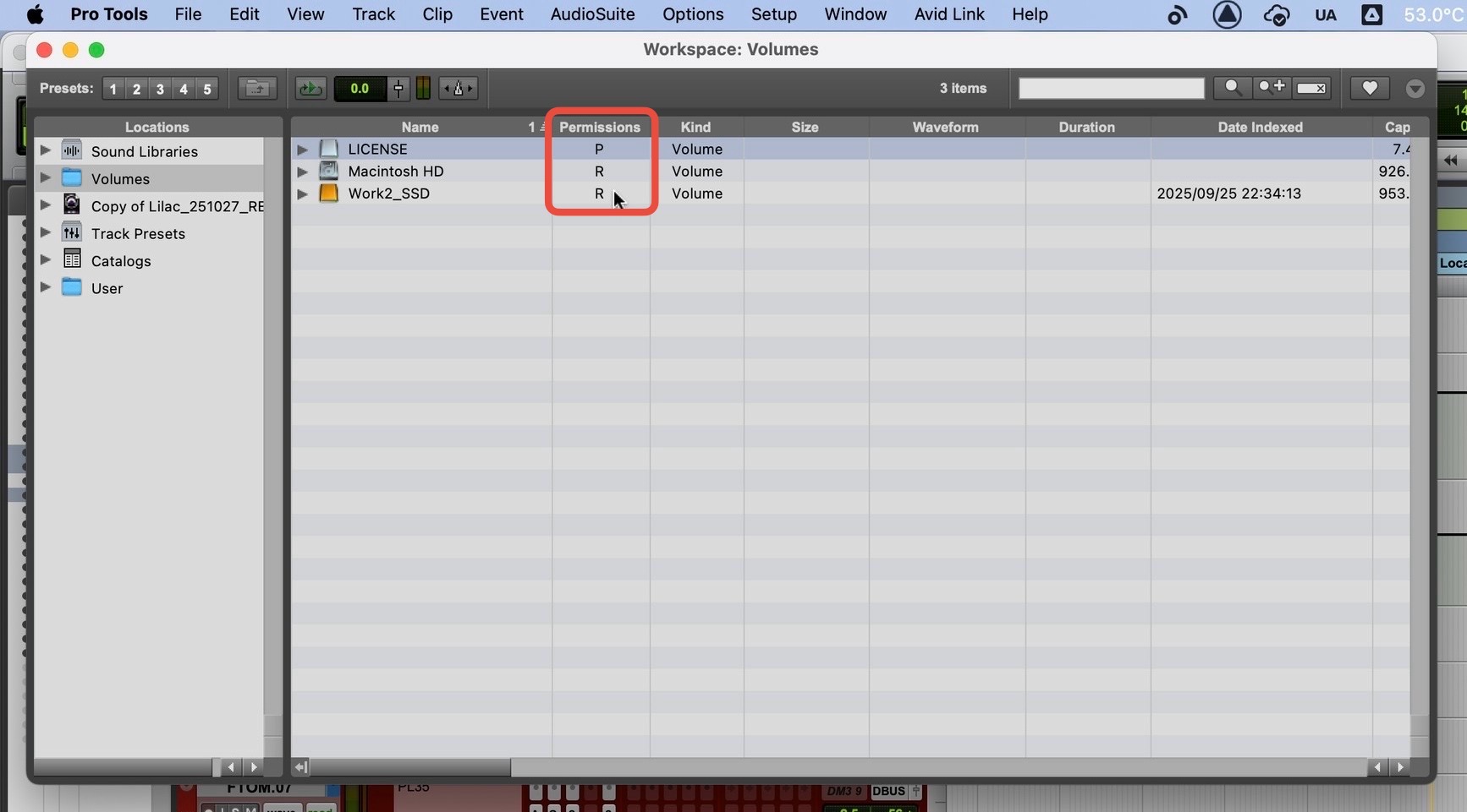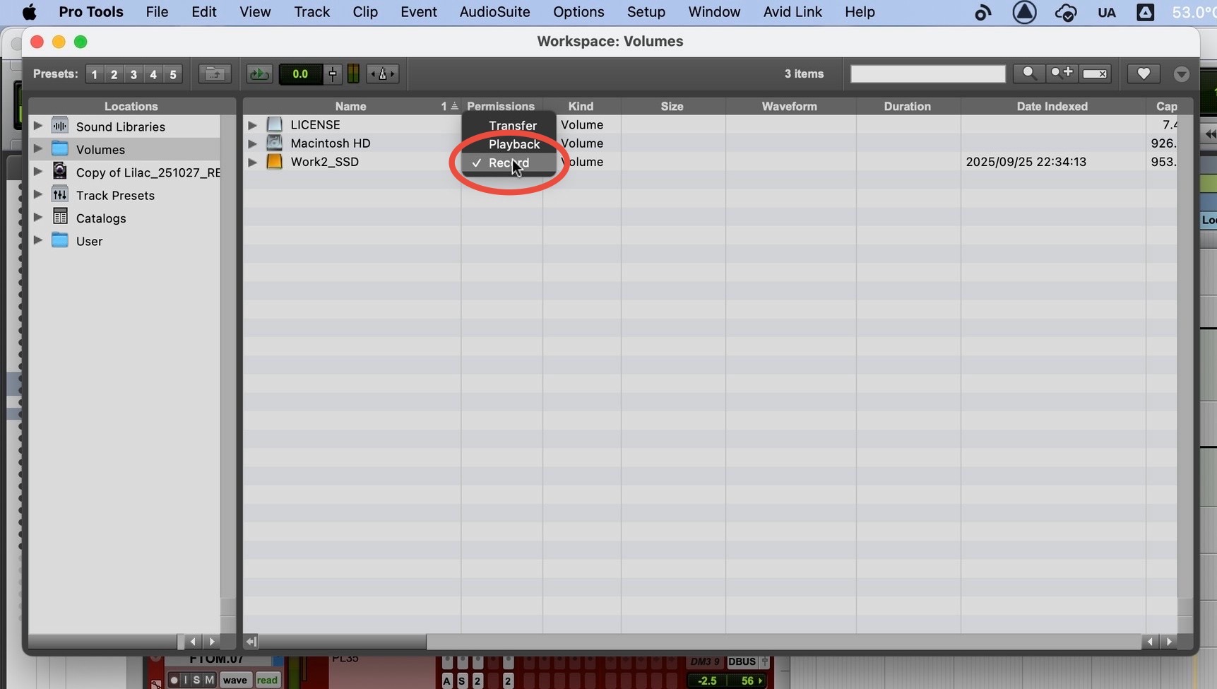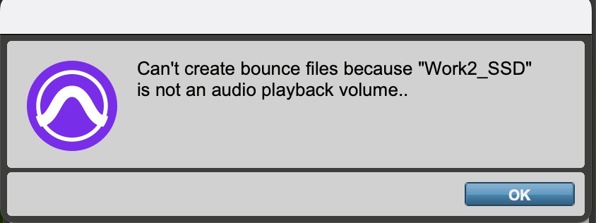 「Can't create bounce files because "(HDD/SSD)" is not an audio playback volume」