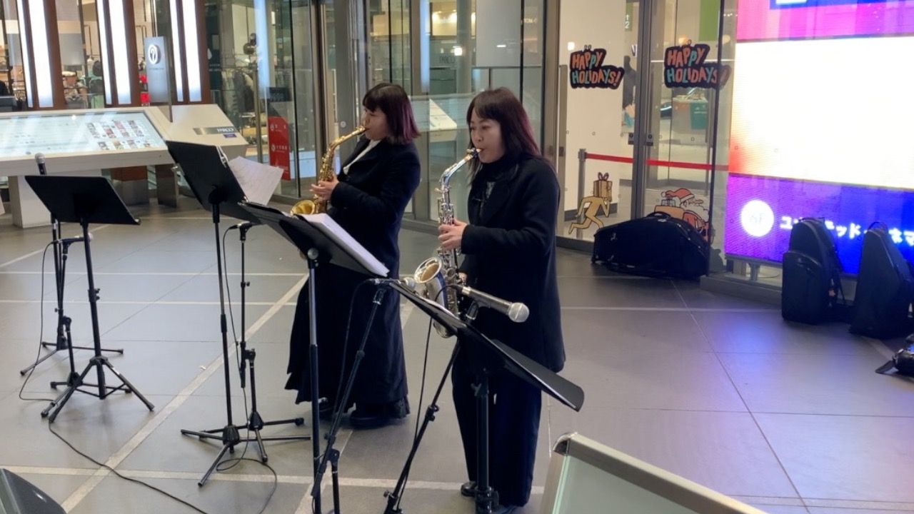 浦和パルコ正面入り口での実施となり、JAZZ・ポップスの華やかな演奏で盛り上げました。