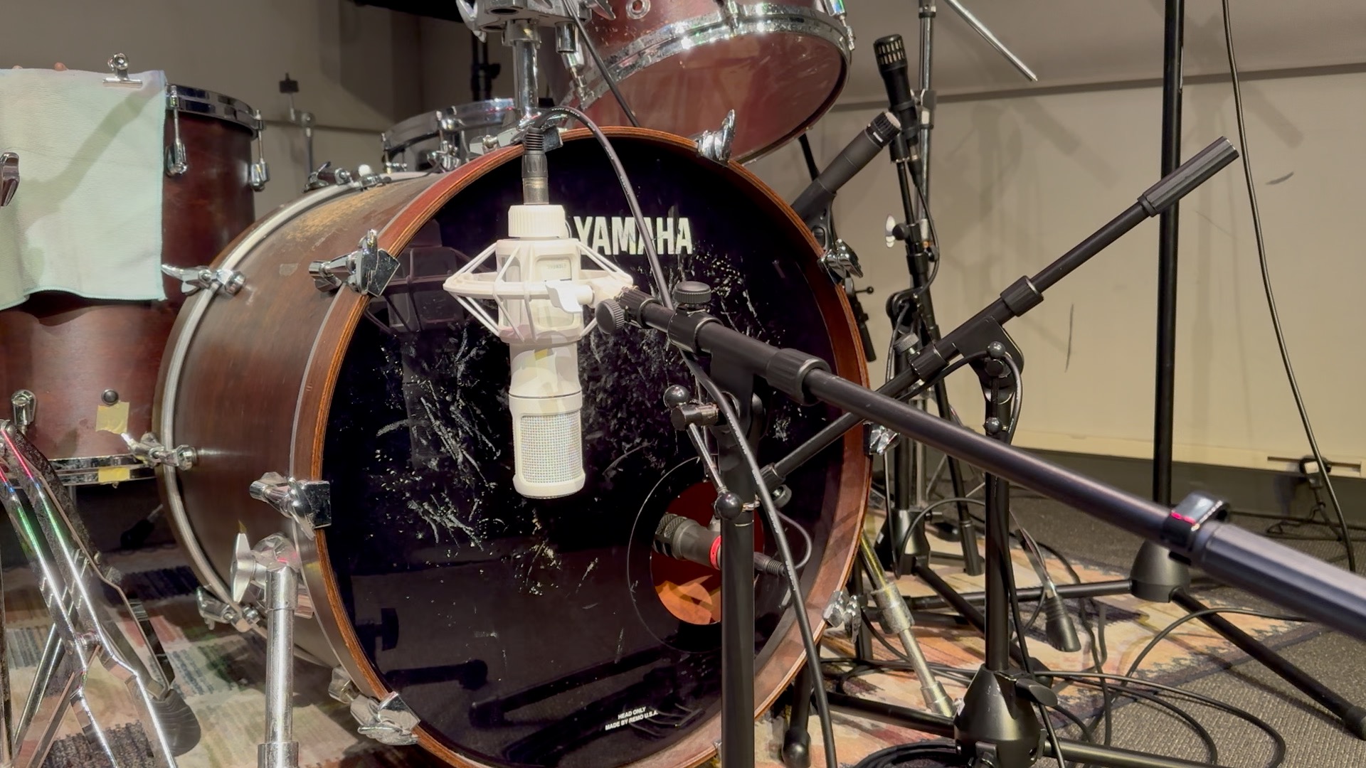 バスドラムの中に差し込み、アタック感・芯のある低音をキャッチ