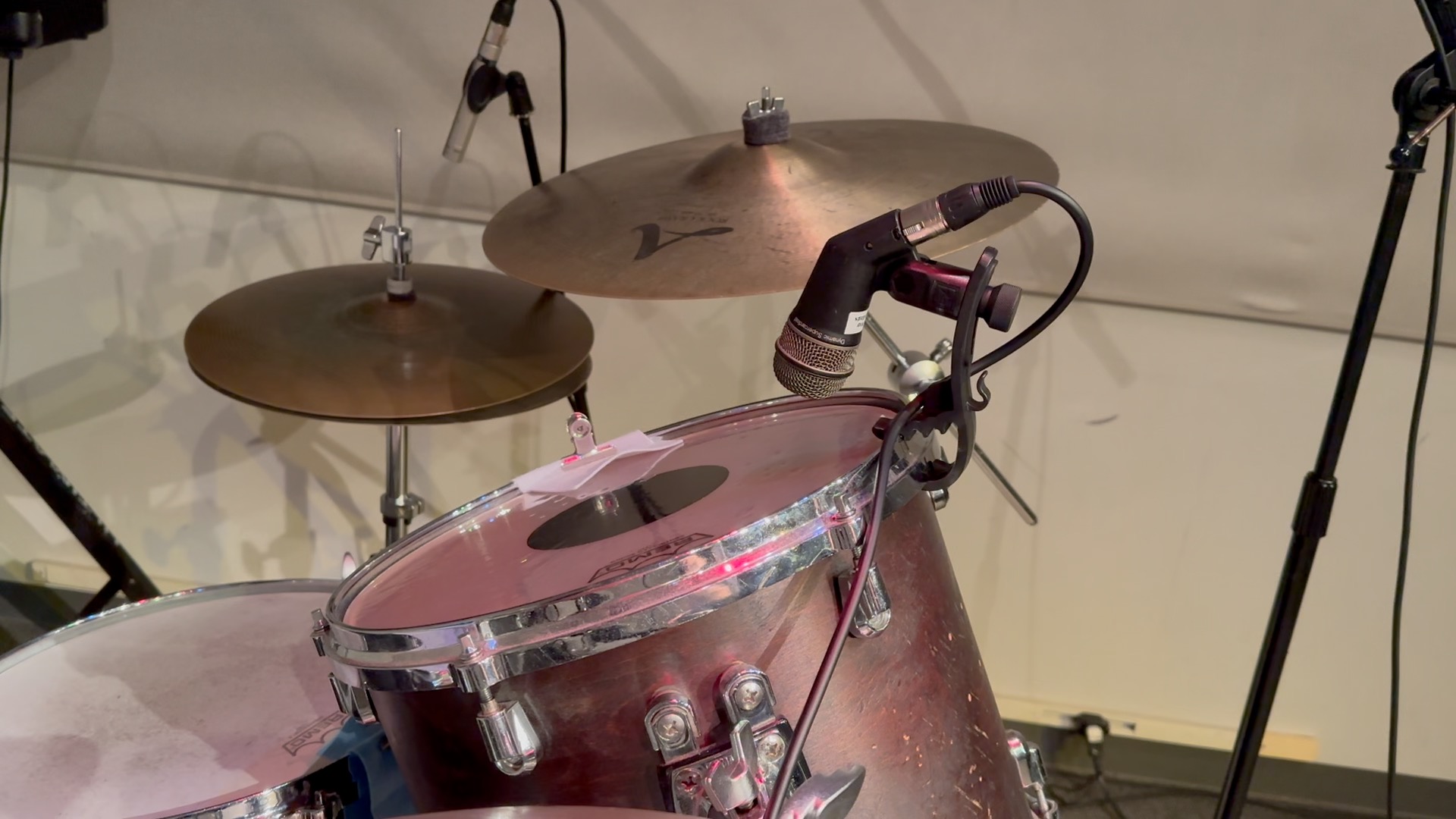 ハイハット用に専用マイクを。繊細な刻みを強調できます。