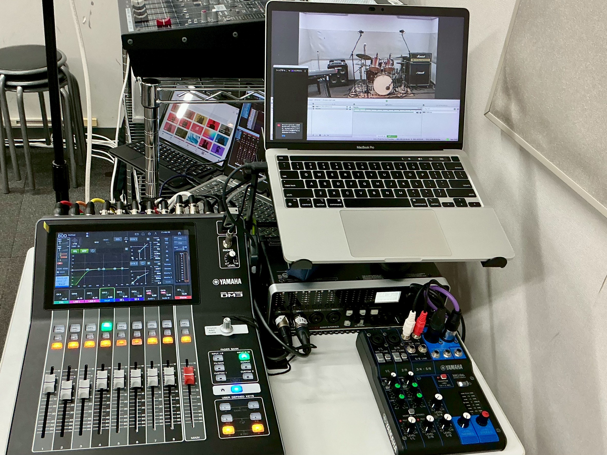 今回のイベントに於いては、楽器や声を①会場内のお客さん ②ステージ上の演奏者 ③配信先のギターコーナーのお客様 にバランスよく音を届ける事が使命になります!
