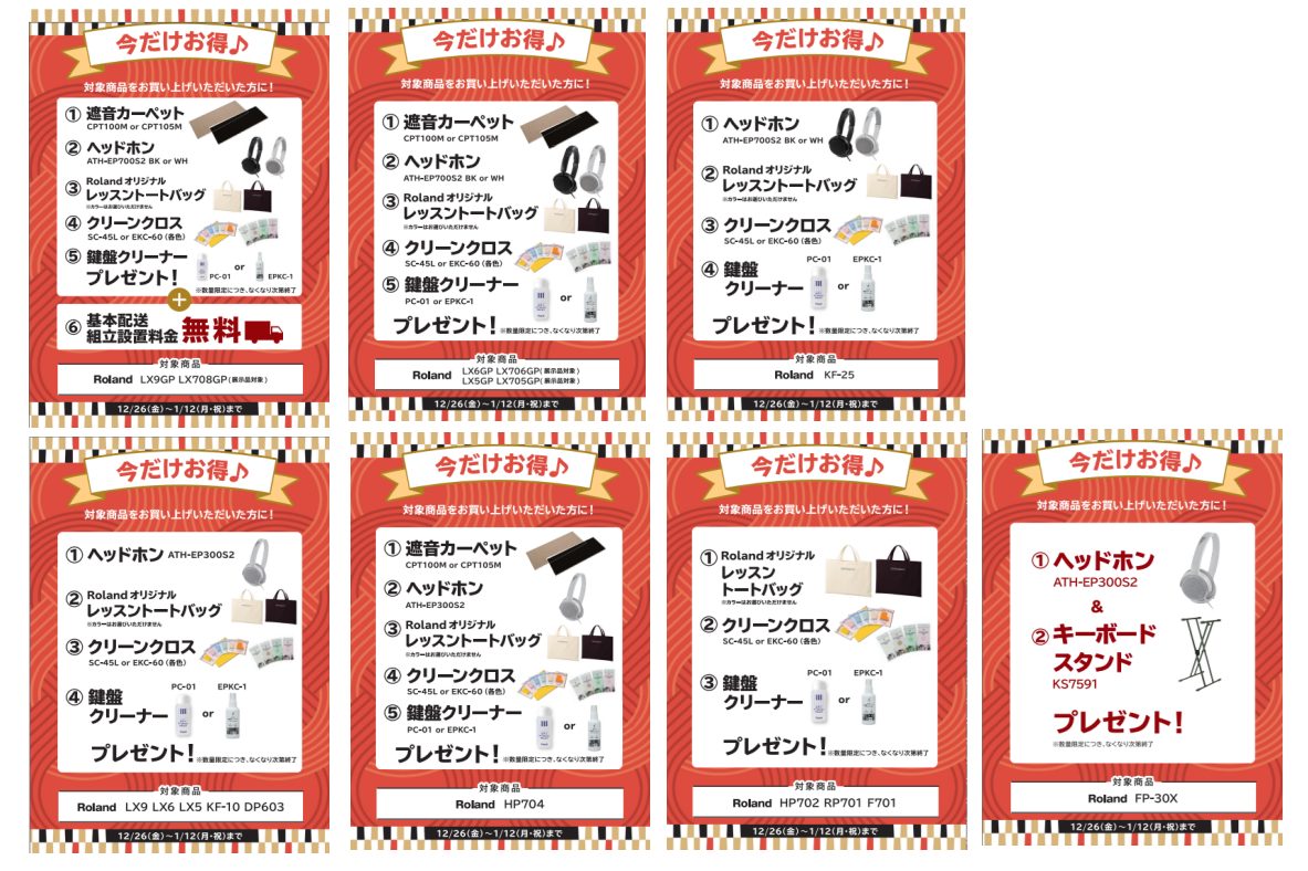 期間中ローランド電子ピアノご成約の方に素敵なプレゼントをご用意いたしております。