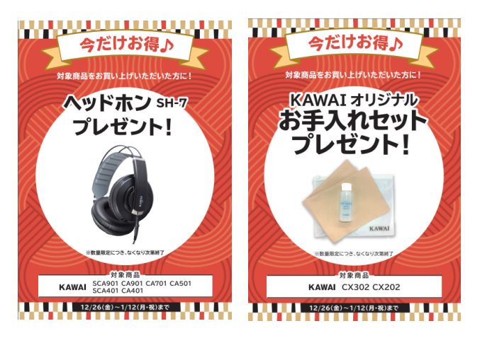 期間中カワイ電子ピアノご成約の方に素敵なプレゼントをご用意いたしております。