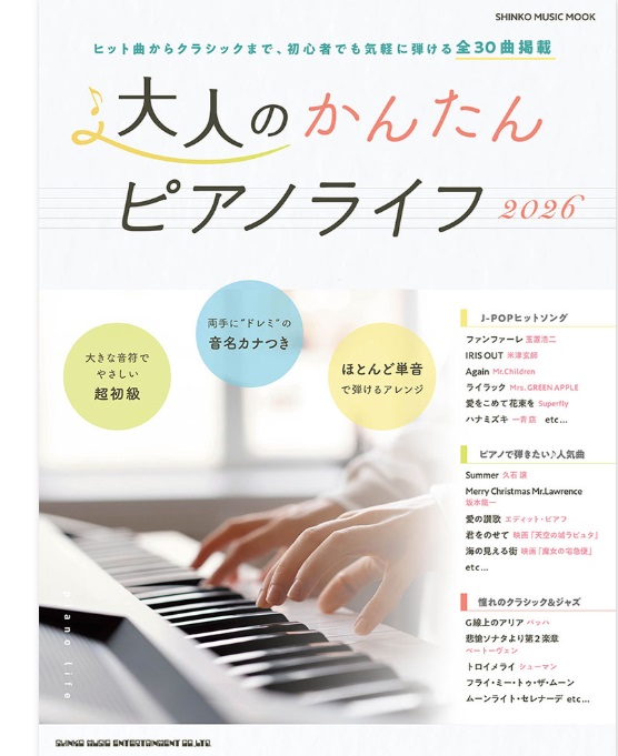 新しく趣味のピアノを始めたい、大人初心者さんのための楽譜集ムックが新登場です。