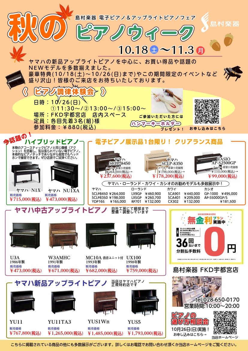 島村楽器FKD宇都宮店では10/18(土)~11/3(月)まで「秋のピアノウィーク」を開催いたします。