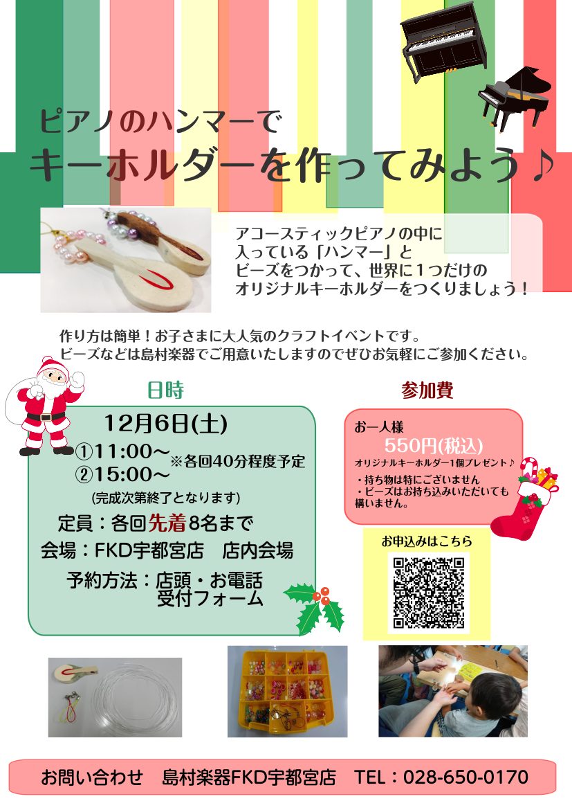 【🎄Christmasピアノフェア🌟】12/6(日)開催「ハンマーキーホルダーを作ってみよう!」