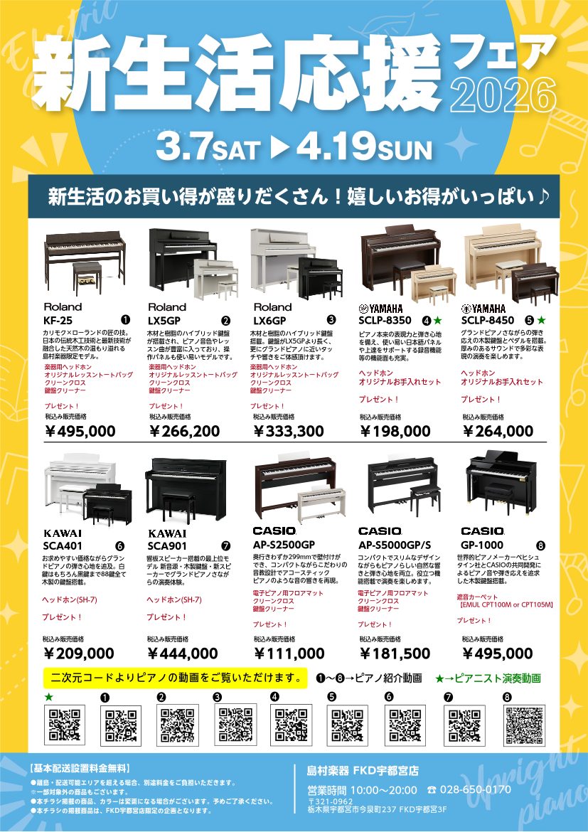 3/7(土)~4/19(日)「電子ピアノ・新生活応援フェア2026」開催中です🎹