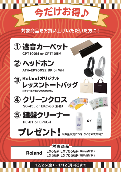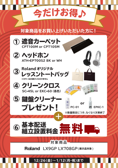 【電子ピアノ】年末年始フェア2026!2025年12月26日(金)~2026年1月12日(月祝)