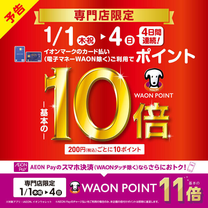 イオンマークのカード払い(電子マネーWAON除く)ご利用でWAON POINT-基本の-10倍!
