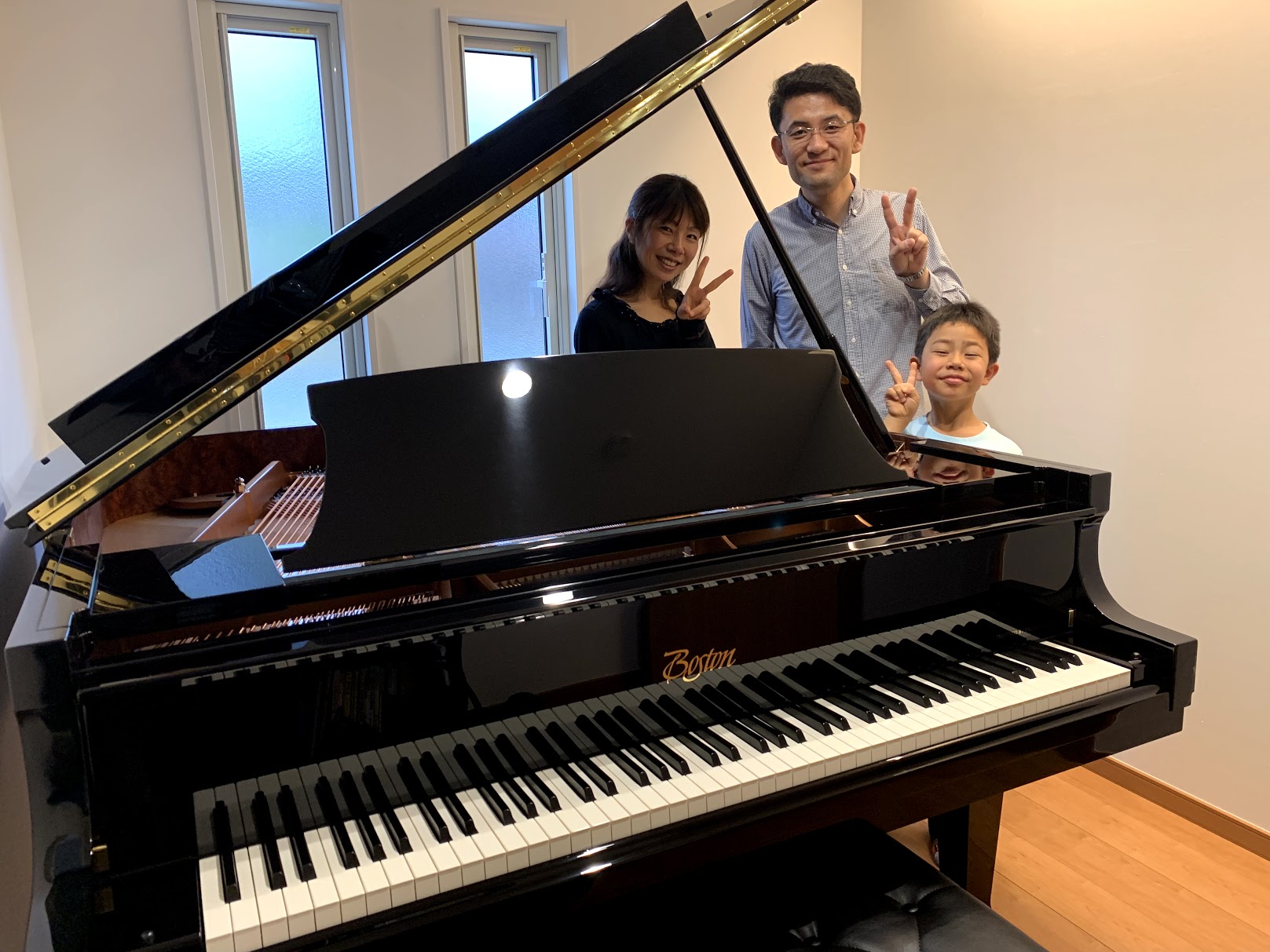 同じ部屋にアップライトピアノもあるため、コンパクトかつ豊かなサウンドのボストンピアノを気に入って頂けました。