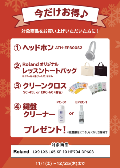島村楽器イオンタウン四日市泊店では日頃の感謝を込めて11月1日(土)~12月25日(木)までの期間中、