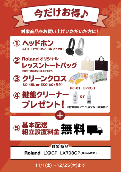 🎄電子ピアノフェア開催中!ご成約特典進呈!🎹
