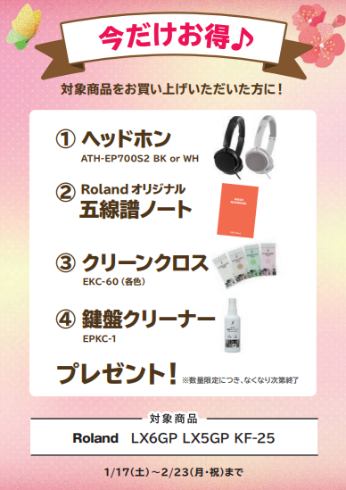 島村楽器イオンタウン四日市泊店では日頃の感謝を込めて~2月23日(月祝)までの期間中、